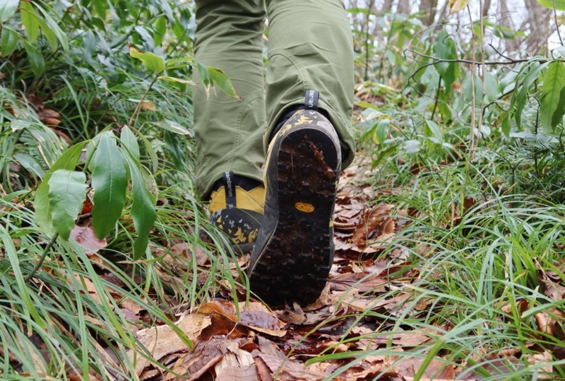 アッパーとアウトソールが柔軟なので、軽い力で前方へ蹴り出しやすく、体重移動がスムーズだ。だから、長時間歩いても疲れが少ない。これが硬めの一般的アプローチシューズだったら、そうはいかない。