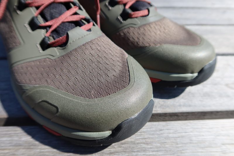 C1_DLは全体的にソフトなシューズだが、この樹脂は薄手でもかなり硬いのに驚く。だから、つま先をガードする保護力は十分だ。