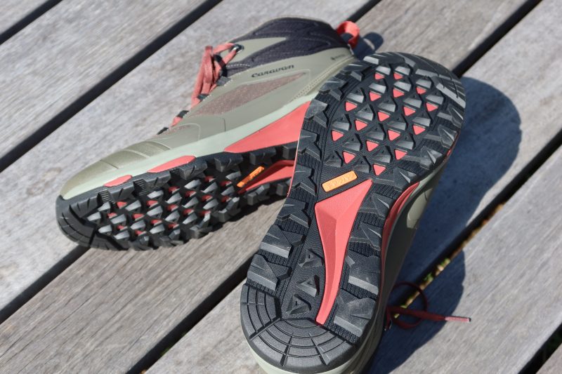 だが、C1_DLに使われているキャラバンLITEソールは、厚みを抑えているのに想像以上に張りがある。そのために地面から感じる過度な凹凸感は消え去り、違和感なく歩けたのだ。また、C1_DL MIDは足底の見えない部分に3Dスタビリティパーツを備えて、シューズの安定性と剛性を高めており、その力も寄与しているに違いない。