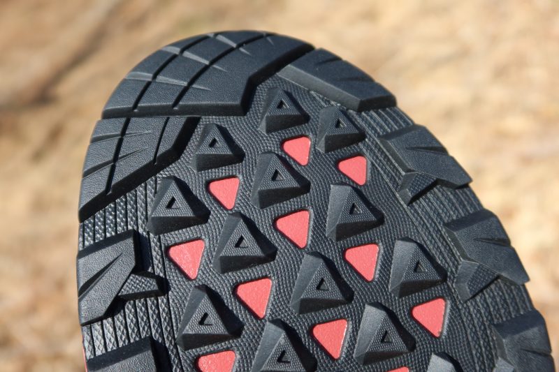 肉抜きされているアウトソールは接地面積が減っているはずだが、それを感じさせないほどラグのひとつひとつが地面の凹凸をとらえ、ほとんどスリップしない。