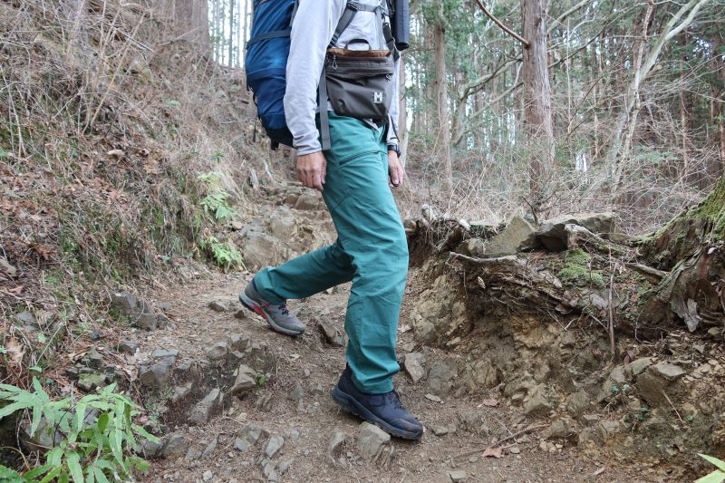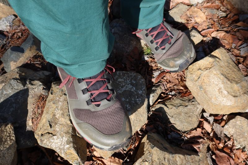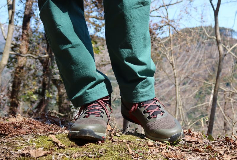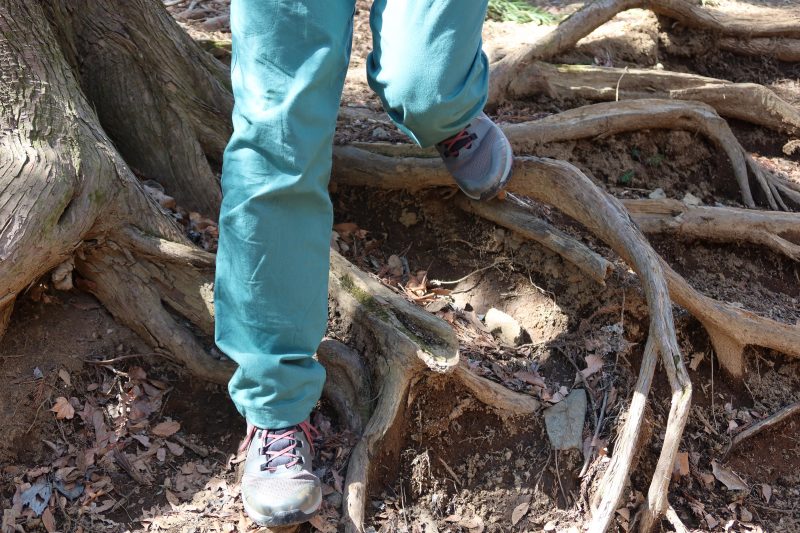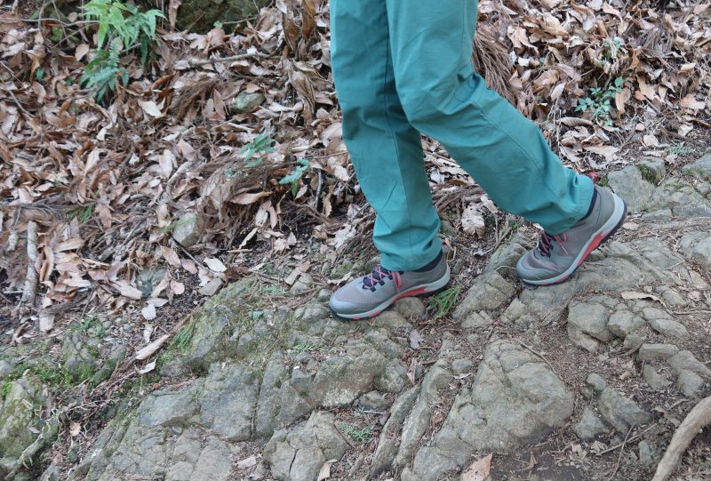 木の根などで大きな段差ができているような場所は、EVAを使ったミッドソールの衝撃吸収性の高さを感じた。もちろんクッション性を重視した最近のトレイルランニングシューズほどではないが、そもそもC1_DL MIDは軽量性を重視したハイキングシューズだ。それを考えれば、クッション性は十分である。