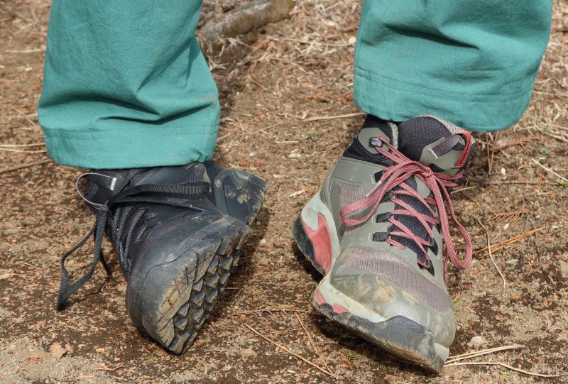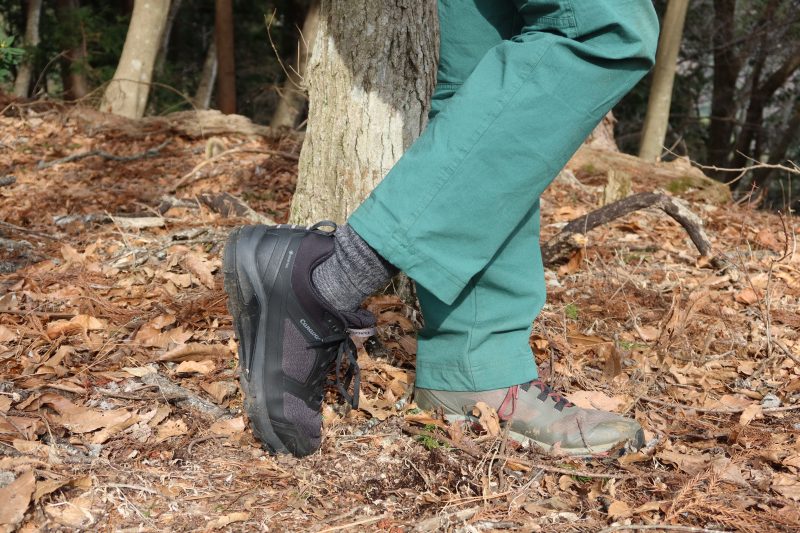だから、足先へ負担をかけず、歩きたい人はC1_DL MIDを選んだほうがよい。しかし起伏が少ない場所ならばローカットでもつま先への負担をあまり感じず、より軽快に歩くことができるだろう。しっかりと山を歩きたい人にはミッドカット、森のなかの散策程度ならばローカットが適しているともいえそうだ。
