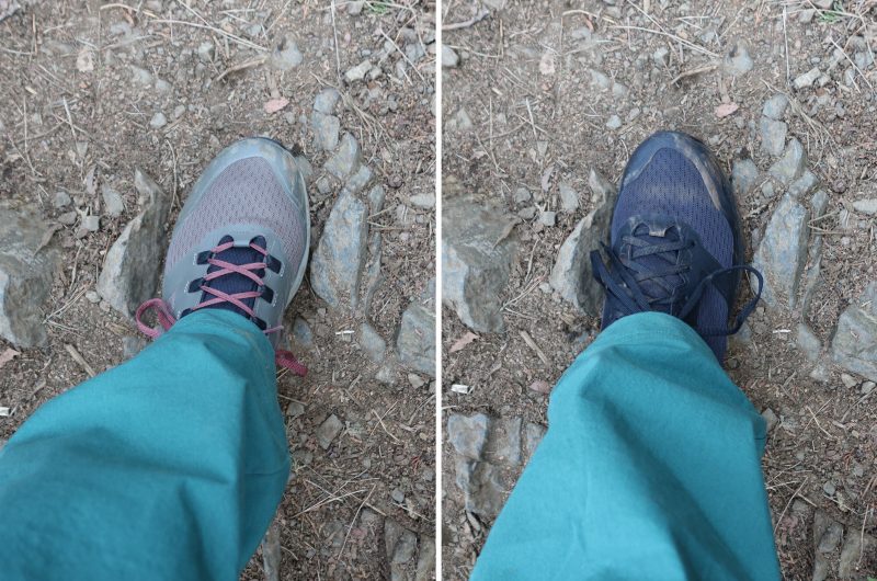 それどころか、僕がテスト前に少し心配していた “ 問題 ” も生じなかったのには感心した。それはアウトソールが薄いために、岩場や石がゴロゴロしている場所では足裏にその凹凸を覚え、違和感をもたらすのではないか、ということだ。これは軽量に作られたシューズにありがちな問題で、足裏感覚を生かして歩きたい人にはメリットでもあるのだが、やはり不快だと感じる人は多いようである。
