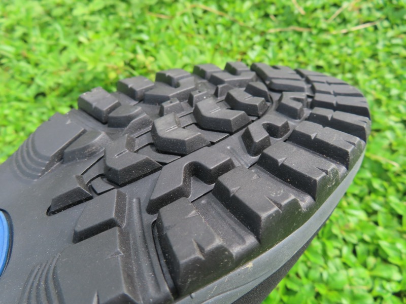 ぬかるみの中でもある程度のグリップ性を発揮してくれるのは、アウトソールのブロックのミゾが深いからだろう。