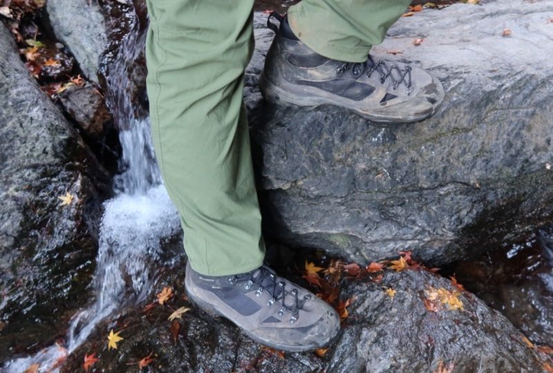 このGK8X_FFFがとくに向いているのは、日本アルプスや八ヶ岳のような少しハードな山や登山道だろう。GK8X_FFFの岩場での滑りにくさや体のバランスを保つ力には安心感が高い。テント泊のときのように重い荷物を背負うときにも適している。