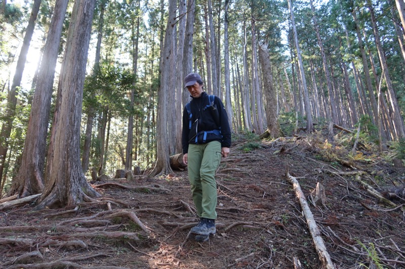 このような木の根の上はなにかと滑りやすく、それに加えて下り道では自分の体重によって足腰や膝に大きな負担がかかりやすい。