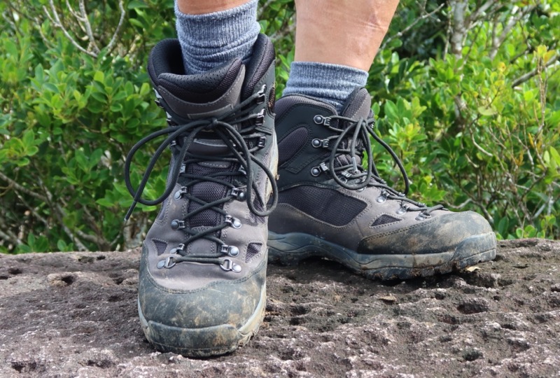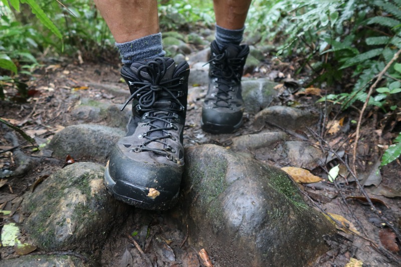 斜めになった岩の上に足を置いても足首があまり曲がらないので、体が不意に傾くことがない。これは怪我の防止のほか、疲労軽減にもつながる。