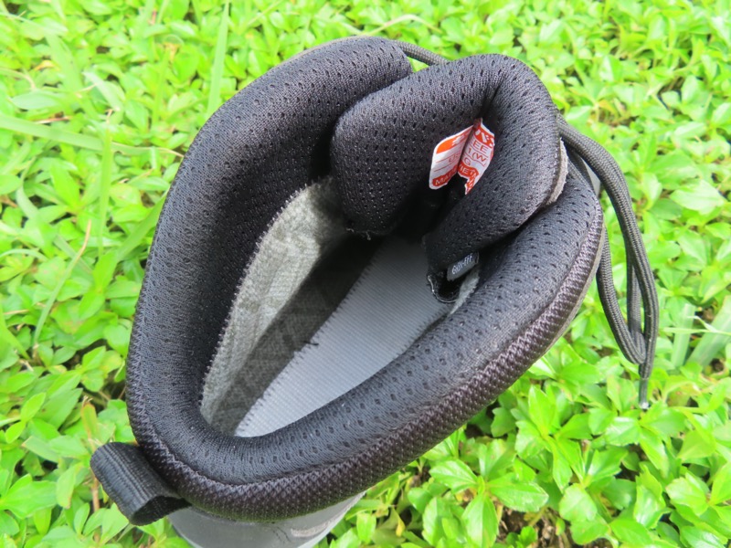 アッパーはしっかりと足首まで覆うハイカットタイプだ。不整地でも捻挫を起こしにくい。