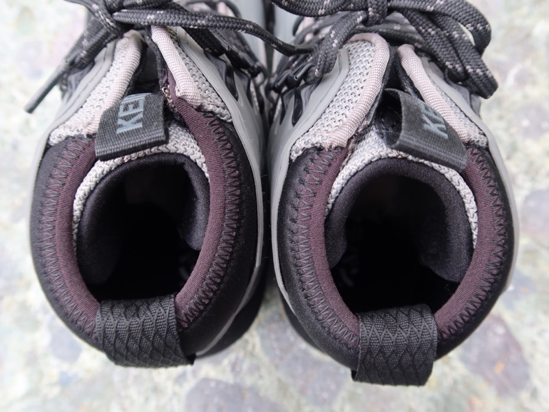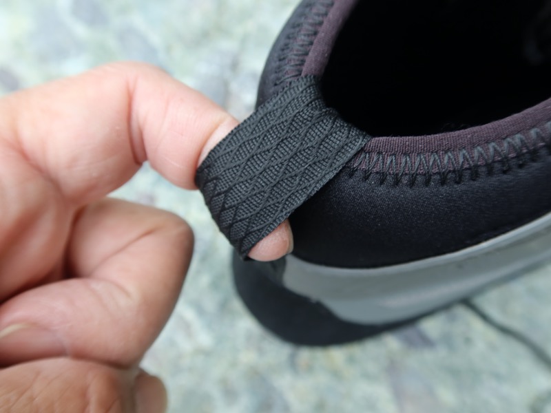 足首周りはストレッチ性の発泡ラバー素材が使われ、上から見ると少しキュっと狭まっているような形状だ。これによってフィット感を高め、異物の侵入口となる隙間を減らしているわけなのである。