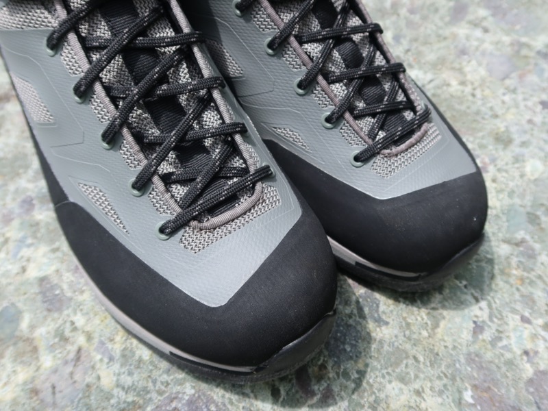 小さなスタンスへ無理に足をかけても足先に負担がなく、岩につま先が引っ掛かって転びそうになったときでも、つま先が痛くなることはない。