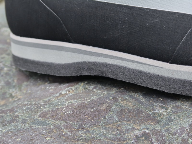 KR_MSF WIDEのアウトソールに使用されているのは、僕が愛用しているKR_3XFと同じ日本製の高密度フェルト。以前のレポートを見ていただけばわかるように、これは非常に滑りにくい沢登りに特化したアウトソールの素材だ。