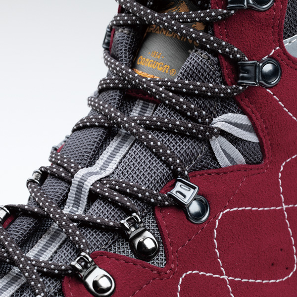 靴ひもの動きがよく、スムーズに締め上げられる金具フックを多用。