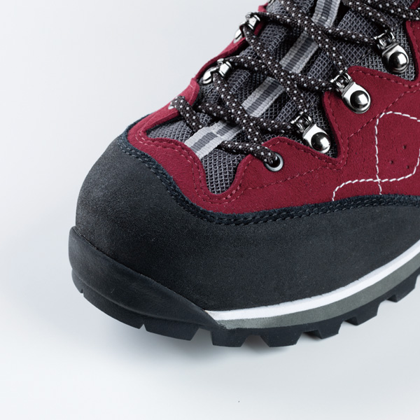 金具のフックを採用しているためシューレースを滑らかに締め上げることができ、つま先寄りからフィットさせられる構造と、足先の高さを抑えた改良型アドバンスラストによりフィッティング性も良好。曲線のステッチを効かせた遊びゴコロのあるデザインは、ヘビーに見えがちな登山靴の印象を和らげています。