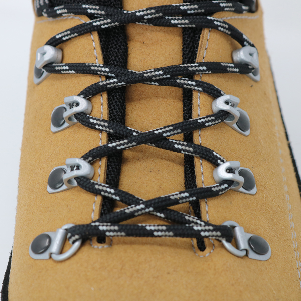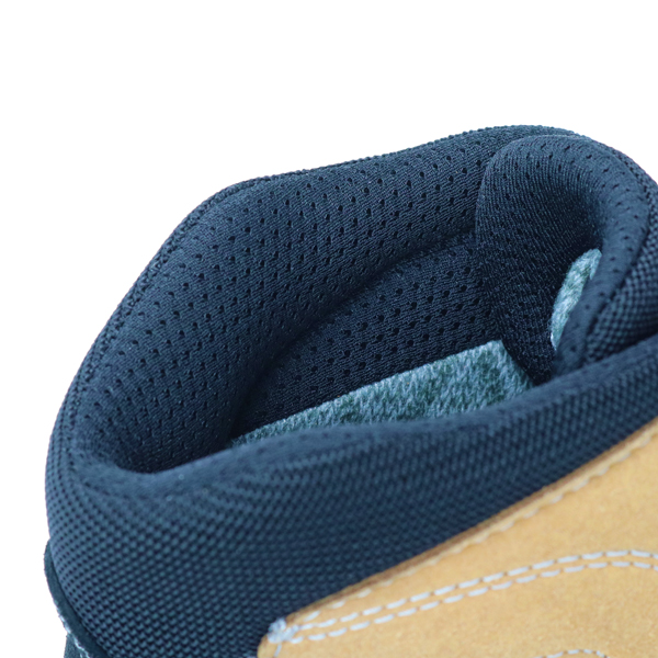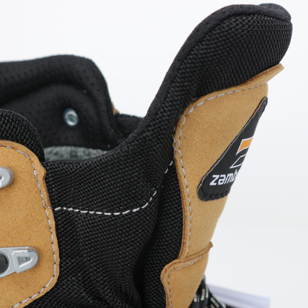 靴の両側面と踵部をスプリットレザーで補強することで、アッパー形状を安定させ耐久性を高めています。