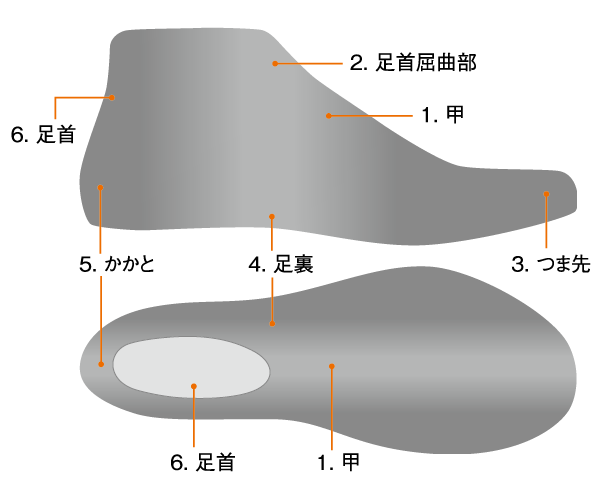 アッパー形状の安定と耐久性を高めるレザーガード補強