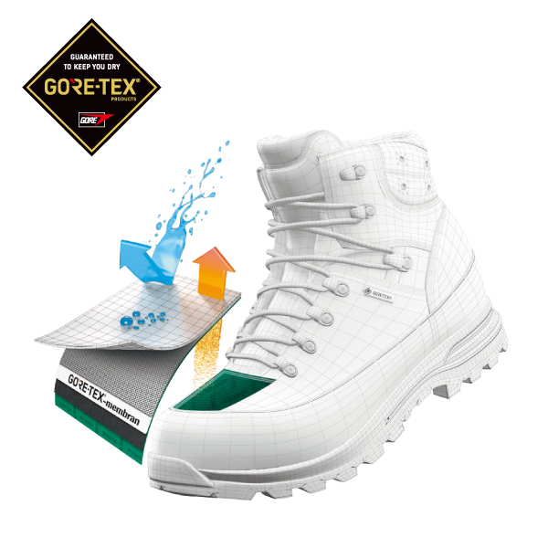 変化の激しい気象条件下でのアウトドア活動に最適です。優れた防水性能と透湿性能に優れたゴアテックス・ファブリックをライニングに使用することで、外から水を浸入させず靴の中から汗など蒸れの原因となる水蒸気を放出して、靴内を快適に保ちます。