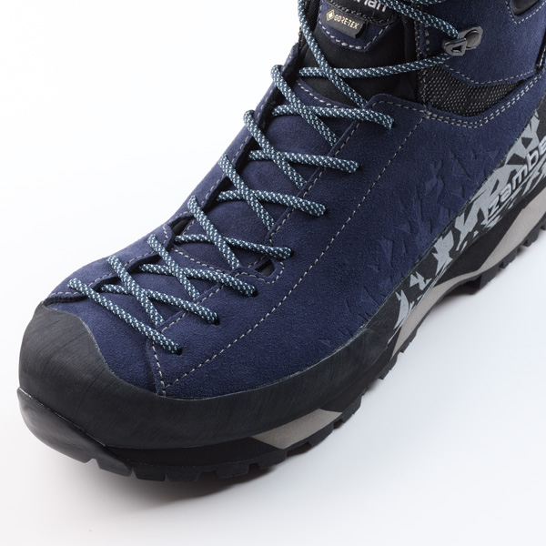 また、岩などぶつかりや擦れから足を守るため、つま先からかかと周り360°をラバー、ポリウレタンで補強しています。