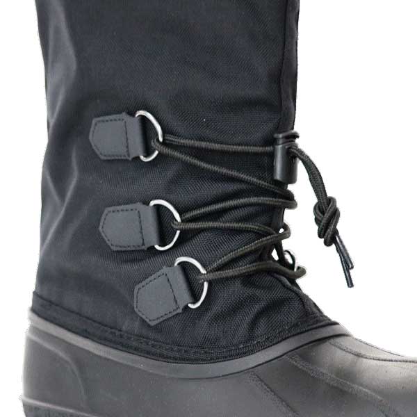 履き口のコードを締めることで上からの冷気や雨、雪の侵入も防ぎ、さらに保温性を高めます。