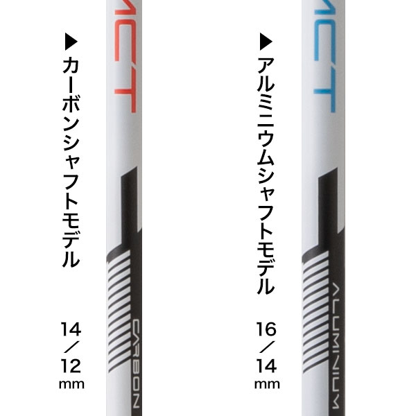 シャフトの太さは、カーボンシャフトモデル:14/12㎜、アルミシャフトモデル:16/14㎜。