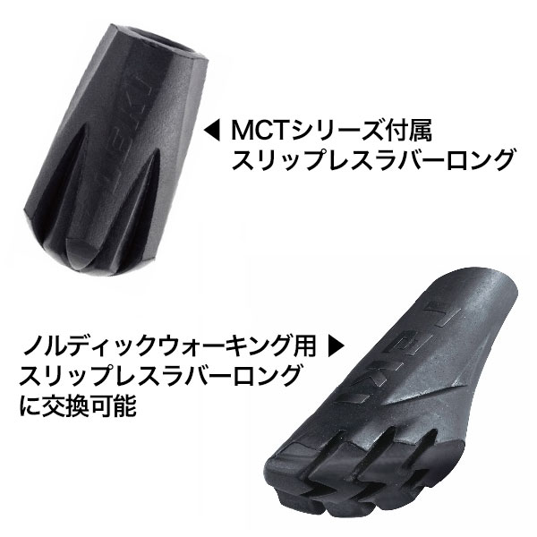 ラバーはスリップレスラバーロングが付属、ノルディックウォーキング用に開発されたスリップラスラバーロングに交換も可能。