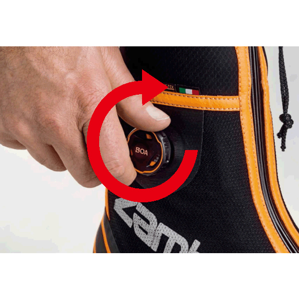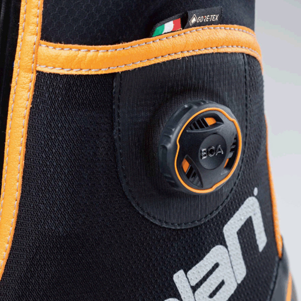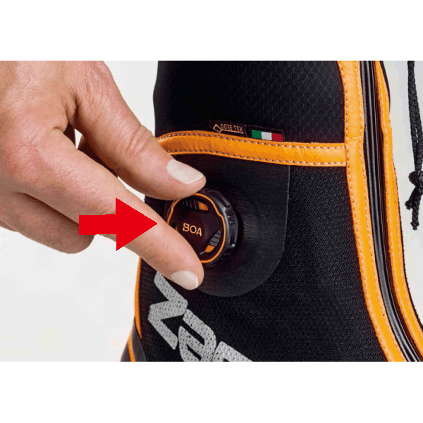 BOA®システムのダイヤルは、グローブをしたままでも操作のしやすい大きさのダイヤル、 フロントの止水ファスナーの動きもとてもスムーズで、グローブを装着したままでも扱いやすい仕様になっています。