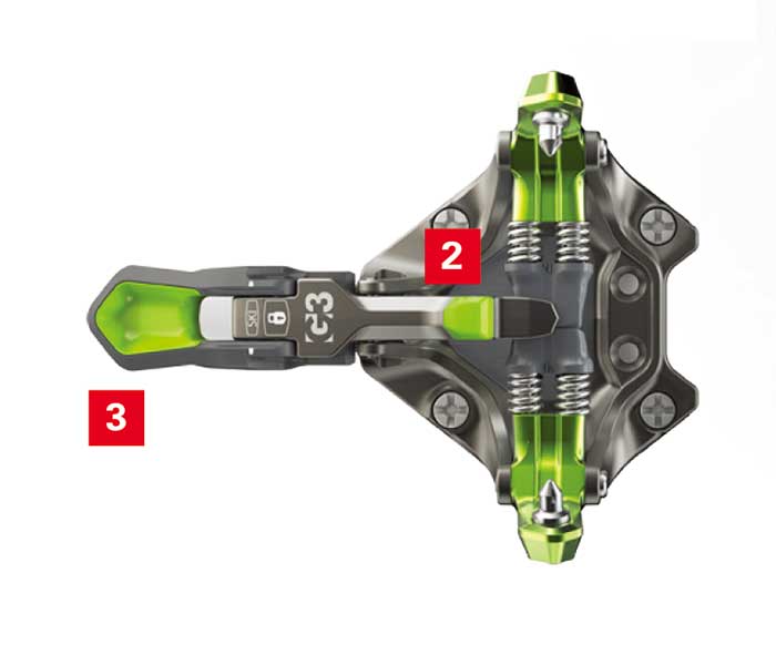 1)IONをプラットフォームとして全てのパーツ、メカニズム、スクリューに至るまで理想的な特徴を持った最軽量のビンディングの進化を遂げました。