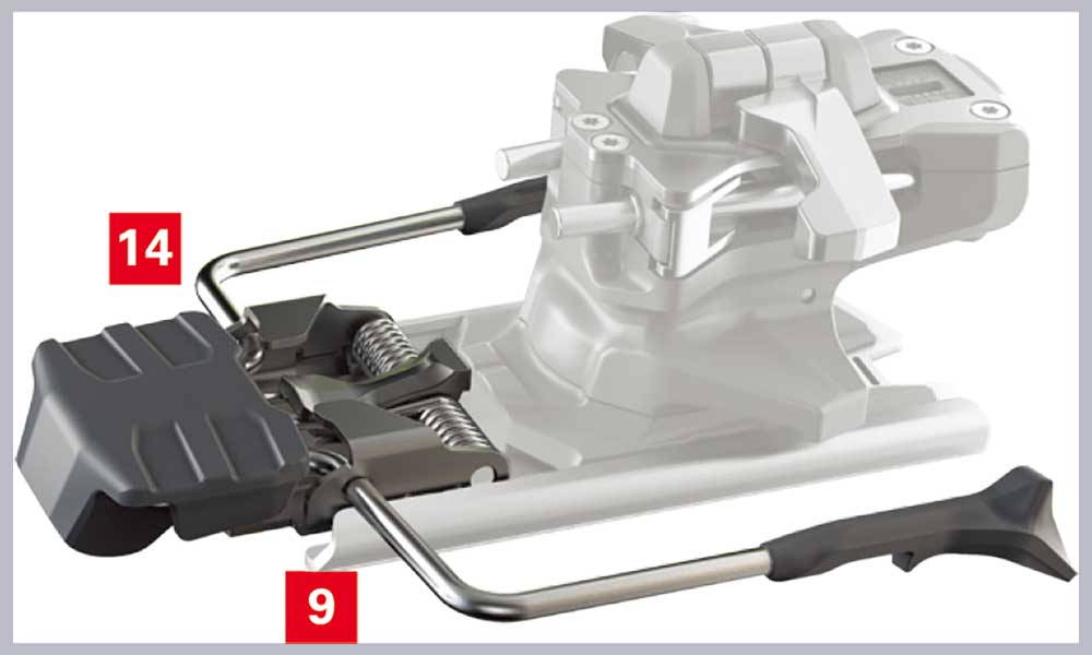 9)トゥとブレーキのデザインは常に雪を排除しステップインを確実に行えるようになっています。
