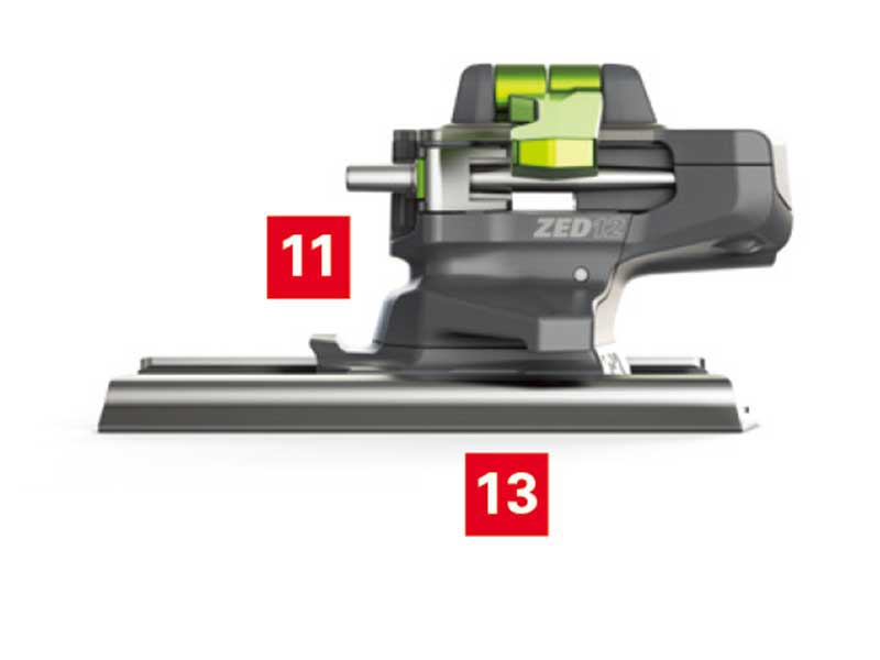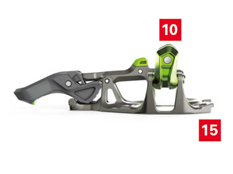 11)ヒール部分の10mm幅の前圧はどのような状況でもリリースを可能にしています。