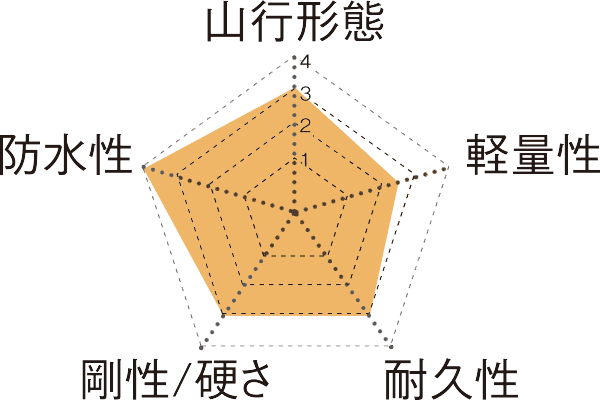 剛性/硬さ:3 登山経験のある人向けの適度な剛性