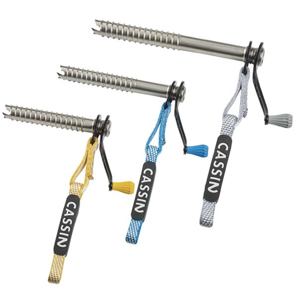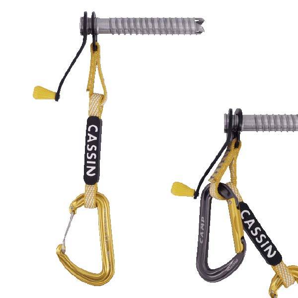 ダイニーマスリングを装備している為、カラビナ1点で使用が可能。一般的なアルミスクリュー+クイックドローよりも重量を軽減できます。