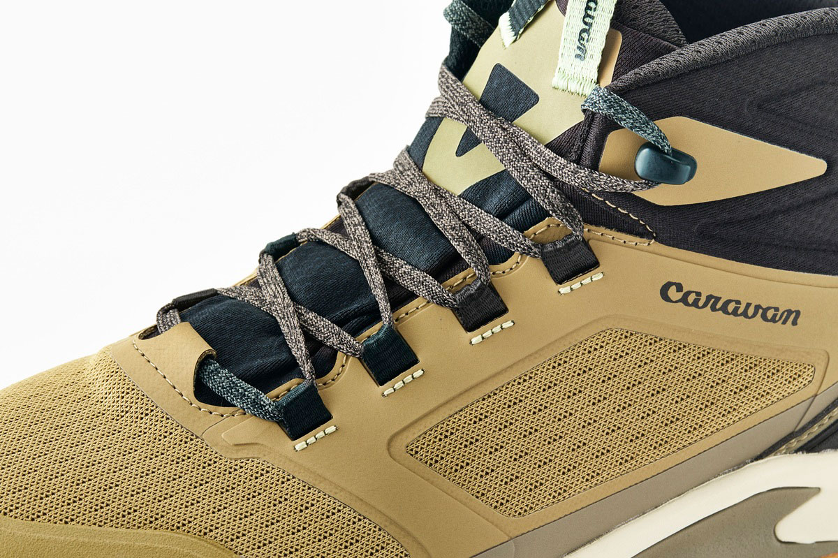 | 素材 | 【 ア ッ パ ー 】ポリエステルメッシュ/TPU(トゥ+ヒール発泡TPUシート補強) 【ライニング】ゴアテックス・メンブレン 【 ソール 】キャラバンオリジナルLITEソール(ミッドソール:EVA) 【インソールボード】エクストラライトフレーム 【インソール】高通気ヒールユニットインソール |