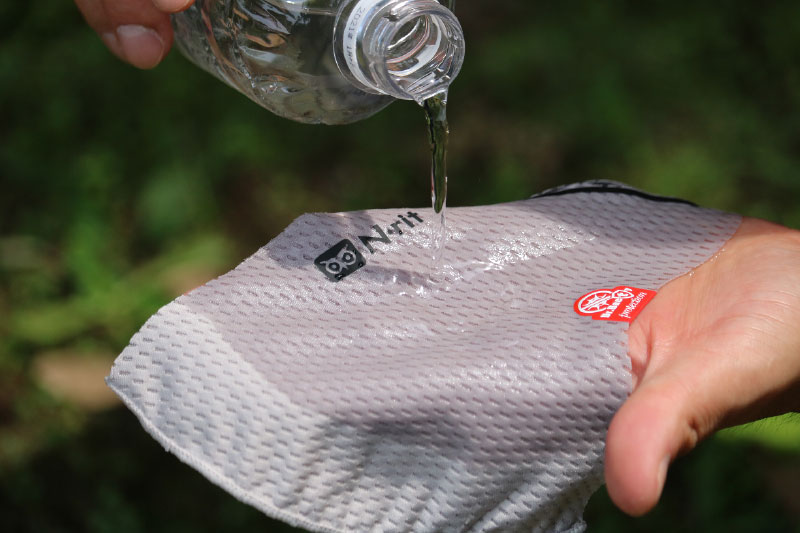 生地の『ひんやり効果』が薄れてきた場合は、水に濡らして絞って振ることで繰り返し何度でも効果を体感することができます。