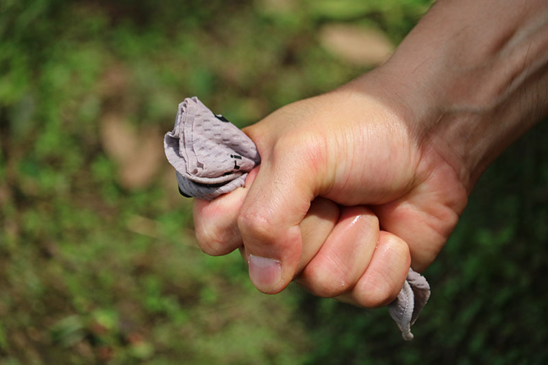 捻じり絞りは生地にダメージを与えてしまうので、握る感じで余分な水分を絞ります。
