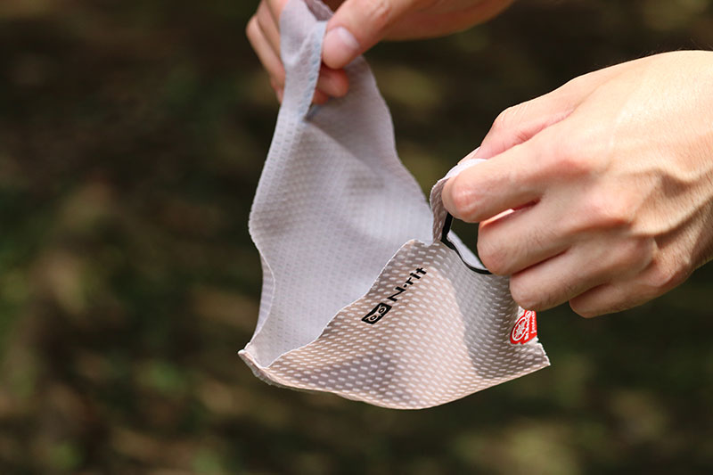 通気性に優れ咳やくしゃみ・唾などの飛沫拡散防止に効果的な、接触冷感・抗菌消臭機能のある素材を採用した