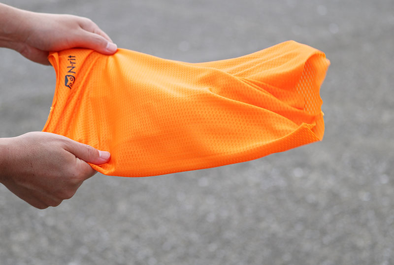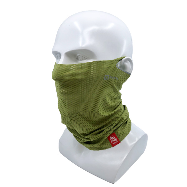 通気性に優れたメッシュ生地のため、スポーツ・レジャー時のエチケット対策、咳やくしゃみ・唾などの飛沫拡散防止としてのフェイスマスク用途はもちろんのこと、首元を『ヒンヤリ冷やす』ことでの熱中症対策にも効果的です。