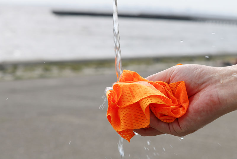 生地の『ヒンヤリ効果』が薄れてきた場合は、水に濡らして絞って振ることで繰り返し何度でも効果を体感することができます。